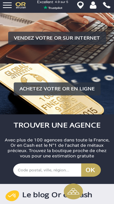 100%Faites racheter vos bijoux ou vos pièces d'or au cours de l'or officiel chez Or en Cash.