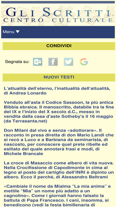 80%sito del centro culturale gli scritti. nel sito sono a disposizione riflessioni, studi e meditazioni prodotti dallo stesso centro culturale o messi a disposizione per ulteriori approfondimenti. e' presente anche un calendario liturgico completo.