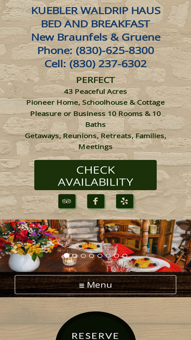 100%welcome to our historic bed and breakfast! we are glad that you are considering a stay at our inn. this historic texas bed and breakfast sits on 43 peaceful and scenic acres.