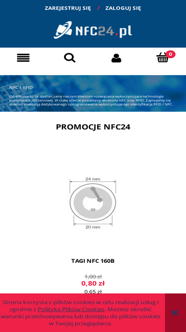 Naklejka RFID MIFARE 1k Naklejki RFID wyposażone w układ NFC w standardzie MIFARE S50 1k. Naklejki NFC posiadają warstwę ochronną anti-metal dzięki czemu mogą być używane po umieszczeniu na powierzchniach metalowych. Do produkcji oferowanego produktu wykorzystaliśmy najcieńszą warstę AM (0.1mm), dzięki czemu grubość znacznika nie przekracza 0.4mm. Naklejki RFID na metal Najważniejsze atrybuty oferowanych naklejek RFID: Możliwość pracy (odczyt / zapis) na metalu Zwiększona stabilność odczytu na powierzchniach metalowych dzięki wykorzystaniu dużej anteny w układzie MIFARE Grubość tylko 0.4mm dzięki zastosowaniu bardzo cienkiej warstwy anti-metal Unikalny nadruk o jakości fotograficznej MIFARE S50 1k Do produkcji naklejek wykorzystaliśmy układy RFID zgodne ze standardem MIFARE S50 Classic 1k, które swoją popularność zawdzięczają połączeniu niskiej ceny z dużą ilością dostępnej pamięci. Naklejki NFC pracują z częstotliwością 13.56 MHz i posiadają 1024B pamięci (16 sektorów po 4 bloki o rozmiarze 16B). Pamięć 752B jest dostępna dla zapisu danych użytkownika. Kompatybilność ze standardami NFC ISO 14443A NDEF Naklejka RFID Mifare 1k jest kompatybilna z większością telefonów komórkowych z modułem NFC, jednak nie ze wszystkimi. Informacje na temat kompatybilności układów zbliżeniowych MIFARE znajdują się na naszym blogu. Oprogramowanie RFID Realizujemy dedykowane oprogramowanie wykorzystujące technologię zbliżeniową RFID. Zapraszamy do kontaktu. Jakość Gwarantujemy 100 tys. odczytów / zapisów na oferowanych znacznikach RFID. Więcej o procedurach kontroli jakości Więcej informacji na temat technologii NFC można znaleźć na naszym blogu. Masz pomysł na wykorzystanie technologii NFC, a nie masz pewności czy realizacja będzie możliwa? Skontaktuj się z nami