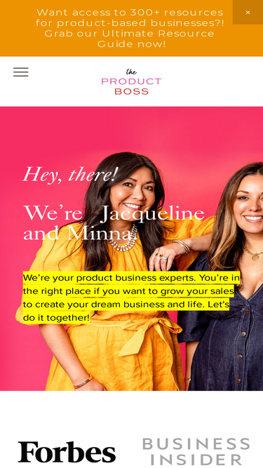 88%Hi, I'm Jacqueline and I'm here to help you take your product-based business to the next level. Listen to The Product Boss podcast and join our community.