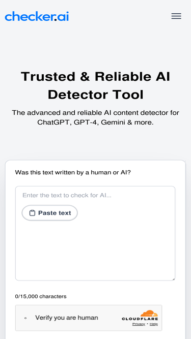 Verify text authenticity with Checker.ai, an AI detection tool that determines whether content is human or AI-generated.
