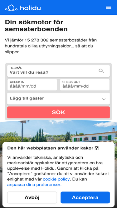 HomeToGo är en sökmotor för semesterboenden, lägenheter, villor, stugor, m.m. Sök, jämför och boka online.