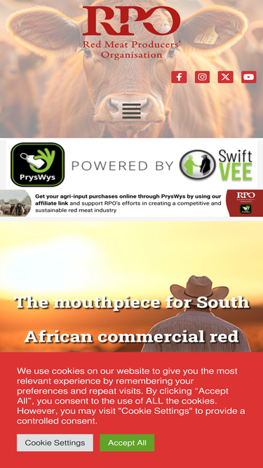 77%The mouthpiece for South African commercial red meat producers.Die mondstuk vir Suid-Afrikaanse kommersiële rooivleis produsente.Ons Missie | Our MissionDie bevordering van ‘n volhoubare en winsgewende rooivleisbedryf in Suid-Afrika. / The promotion of a sustainable and profitable red meat industry in South Africa. Latest News NASIONALE RPO SE REAKSIE OP Lees meer / Read More... THE