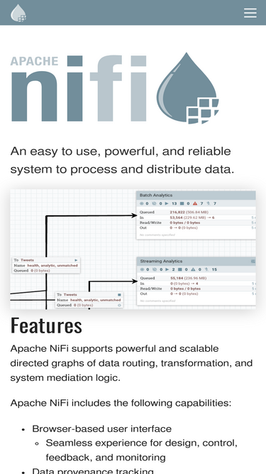 72%Apache NiFi is an easy to use, powerful, and reliable system to process and distribute data