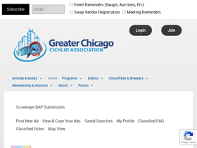 72%greater chicago cichlid association's a group of chicago area cichlid hobbyists. monthly meetings the second sunday of each month at the hilton in northbrook.