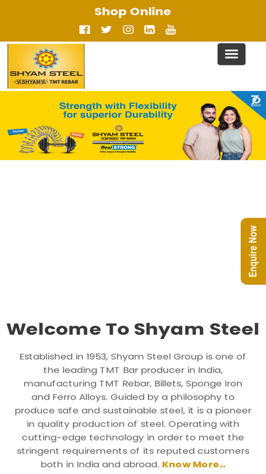 100%Shyam Steel is the leading manufacturers of TMT bars in India. Our TMT rebars and TMT Saria bars are Earthquake | Corrosion | Fire Resistant and Highly Ductile