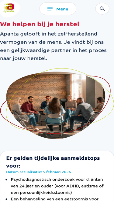 78%Apanta gelooft in het zelfherstellend vermogen van de mens en is een authentieke en gelijkwaardige partner in het proces naar herstel.
