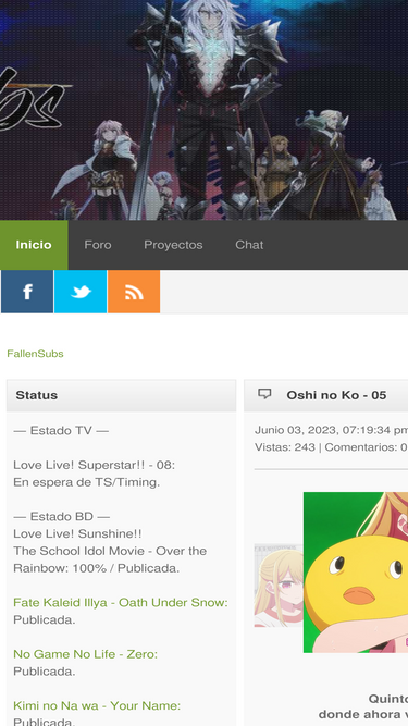 72%fallensubs.com es fansub que de dedica a subtitular anime en tu idioma de los últimos animes emitidos en japon y mucho más..