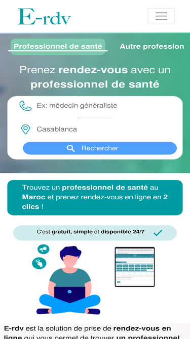 67%e-rdv est la solution complète de gestion et de prise de rendez-vous en ligne accessible 24h/24 et 7j/7. facilitez le quotidien de vos patients et clients en offrant la possibilité de prendre des rdv par internet