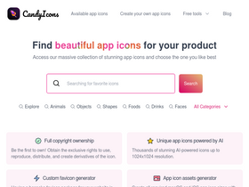 82%CandyIcons is a unique platform that provides users with stunning AI app icons. CandyIcons also offers a playground to generate customized app icons using AI. You can choose from various colors, objects, and styles to find the perfect match for your app - Candy Icons - Candy-Icons - Candy Icon - AI App Icon Generator - AI Icon Generator - AI Generated Icons - iOS App Icon Generator - Generate App Icon - App Icon AI generator