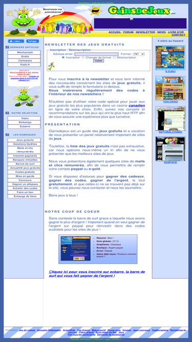 83%un guide complet des sites de jeux gratuits qui peuvent vous faire gagner des cadeaux ou de l'argent avec de vrais tests, des astuces et toutes les actualités.