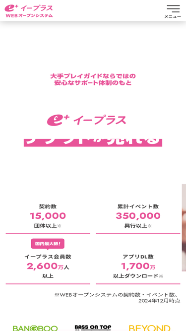 国内最大級のチケット会社「イープラス」でチケットが売れる。チケット販売サービス『WEBオープンシステム』!書類不要の簡単手続き、大手プレイガイドならではの安心なサポート体制のもとあなたのイベントのチケットを販売しよう!