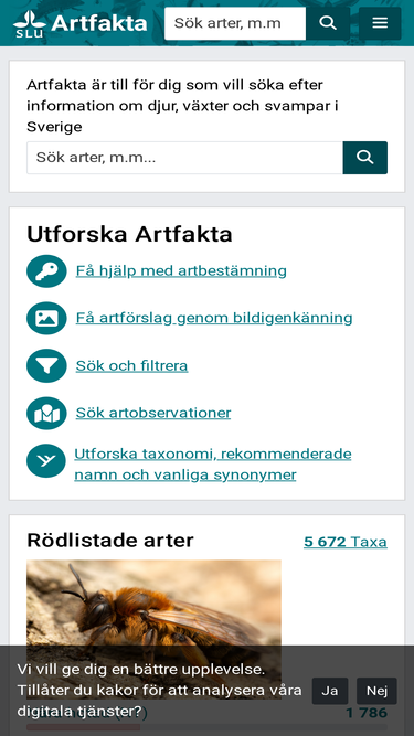 75%artfakta är platsen som samlar relevant information om våra arter. lär dig känna arten, dess naturvårdsstatus, se kartor och bilder, eller använd nycklar för att artbestämma.