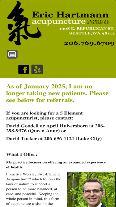 100%eric hartmann, m.ac. treats people using classical 5 element acupuncture in seattle, wa, eric hartmann practices classical 5 element acupuncture in seattle, wa. he has been practicing 5 element acupuncture on capitol hill for 11 years.