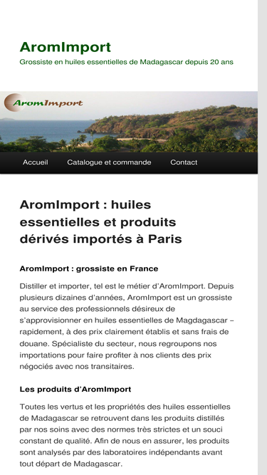 75%Proposant des huiles essentielles de Madagascar et d'autres produits, AromImport est le site des professionnels des essences malgaches.