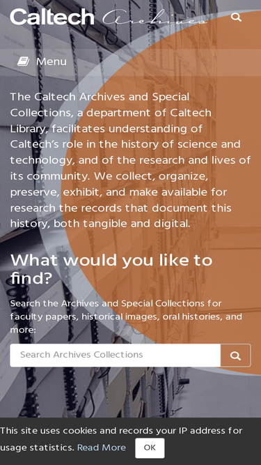 69%Learn about how the Library works and who works at the Library. This section also includes Library policies, our strategic plan and mission statement, and jobs and opportunities. Accessibility information for Caltech Archives