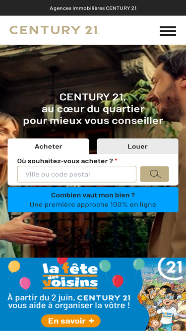91%Découvrez les agences immobilières Century 21 en France et trouvez la propriété de luxe de vos rêves. Nos experts en immobilier de prestige vous apportent un service VIP tout au long de votre projet d'achat ou de vente pour vous garantir un service personnalisé et efficace. Villas somptueuses, appartements haut de gamme, notre sélection exclusive de biens immobiliers de prestige saura répondre à vos attentes les plus exigeantes. Faites confiance à notre expertise et notre réseau de contacts pour réaliser votre projet immobilier de luxe en toute sérénité.