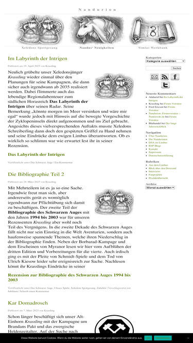 dsaforum.de ocupa el cuarto lugar como sitio web más similar a avespfade.de y nandurion.de se sitúa en quinta posición en marzo 2026.