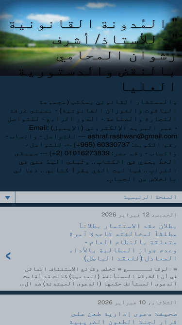 88%موقع حسن عطاالله للمحاماة والإستشارات القانونية متخصص فى قضايا القانون المدنى والجنح والايجارات والعمالية والاسرة والتعويضات والتنفيذ والملكية العقارية وقضايا مجلس الدولة ويتضمن مكتبة قانونية وشروحات وصيغ وموسوعات وابحاث قانونية.