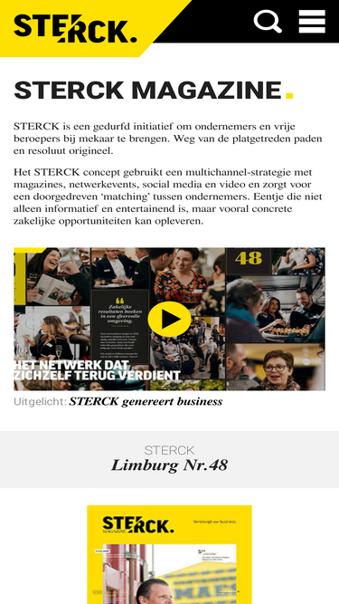 86%STERCK is een gedurfd initiatief om ondernemers en vrije beroepers bij mekaar te brengen. Het STERCK concept bestaat uit meerdere pijlers. Er is enerzijds het STERCK Magazine, en anderzijds het STERCK Netwerck.
