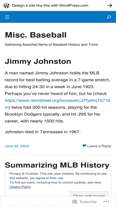 Los otros cinco competidores de la lista de los 10 mejores son baseballthinkfactory.org, miscbaseball.wordpress.com, mlb.mlb.com, baseball-almanac.com y futilityinfielder.com.