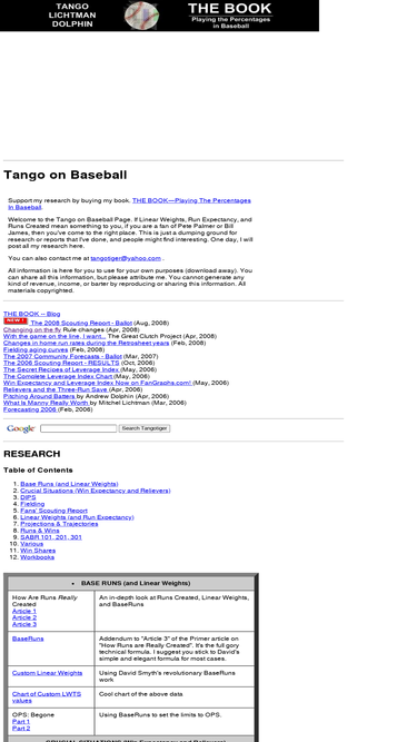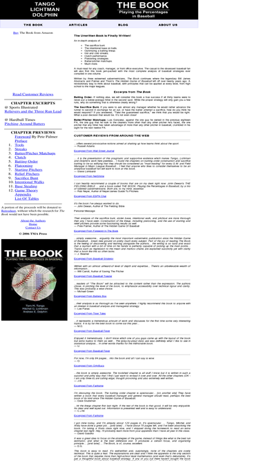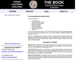 41%the book: playing the percentages in baseball, by tango, lichtman, and dolphin. a numbers-based analysis of batter and pitcher streaks, matchups, clutch hitting, optimal batting order, platooning, starting and relief pitchers, bunts, intentional walks, baserunning, and game theory.