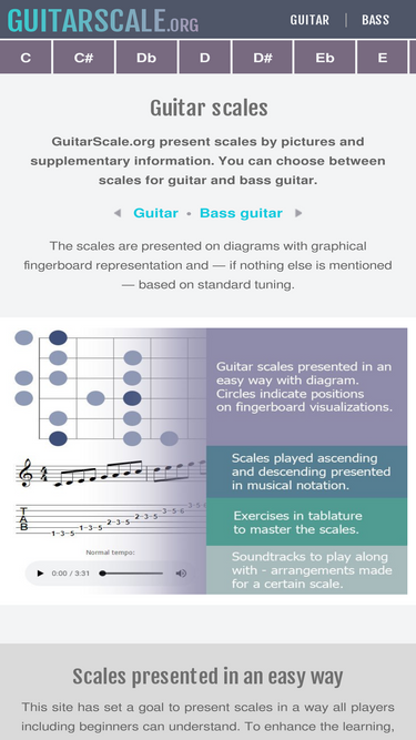 onlineguitarbooks.com ocupa el cuarto lugar como sitio web más similar a basicmusictheory.com y guitarscale.org se sitúa en quinta posición en enero 2026.