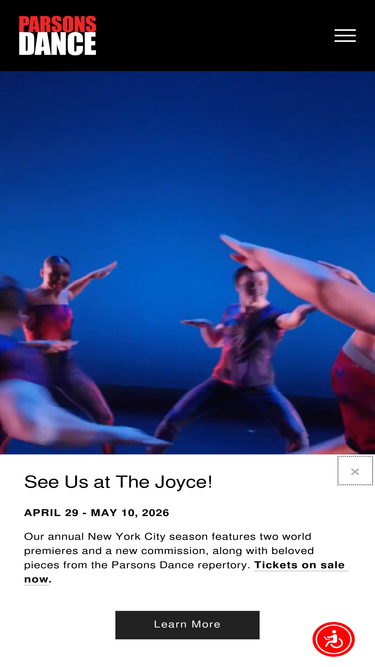 83%Parsons Dance is an international touring modern dance company based out of New York City. Under artistic director David Parsons, Parsons Dance has been touring for 35 years.