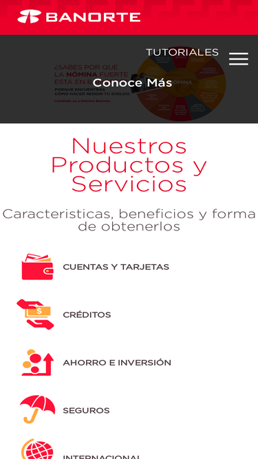 97%¡Bienvenido a Banorte! Administra tus finanzas con Banco en línea, solicita tu tarjeta de crédito Banorte, cambia a Nómina Banorte, solicita un crédito hipotecario, fondos de inversión y más.