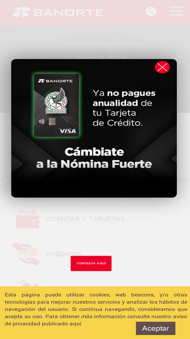 98%¡Bienvenido a Banorte! Administra tus finanzas con Banco en línea, solicita tu tarjeta de crédito Banorte, cambia a Nómina Banorte, solicita un crédito hipotecario, fondos de inversión y más.