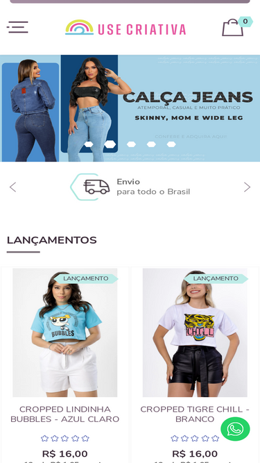Conhe�a o Atacado Online de Tshirt da Use Criativa! Atacado T-Shirts Femininas com malha 100% algod�o. Pedido m�nimo 180 reais. Entrega pra todo Brasil. A Maior F�brica de Tshirt, Jeans e Fitness do Brasil, Parcele em 12x no cart�o. Confira as novidades