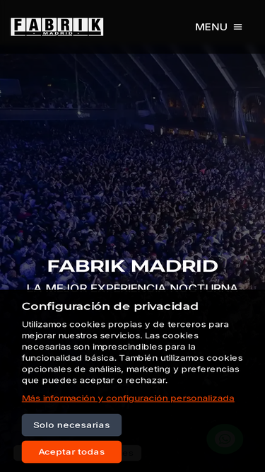 Fabrik Madrid es una de las discotecas más importantes de Madrid y un referente de la música electrónica en España. Gran formato, más de 4.000 personas, los mejores DJs internacionales y eventos cada semana. Uno de los clubs más grandes de Europa.
