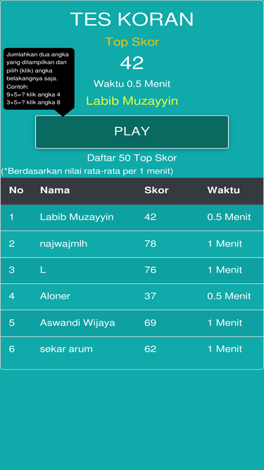 tes koran (kraepelin test) melatih/mengukur kemampuan (kecepatan,ketelitian,keajegan, dan ketahanan) dengan berhitung