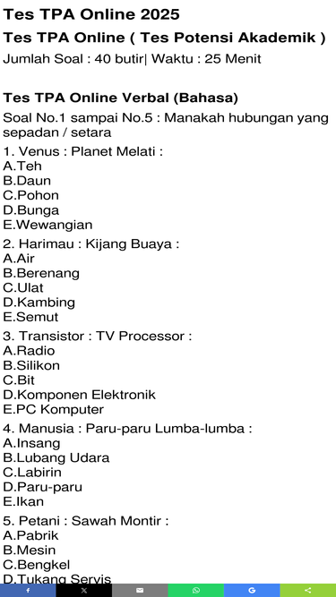 73%simulasi tes potensi akademik tpa terdiri dari tes verbal, tes numerik dan tes logika. disertai kunci jawaban !