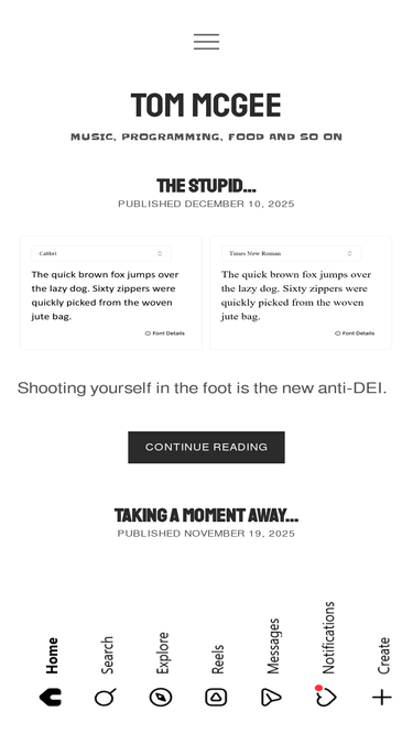 66%The blog has been my day-to-day diary and institutional memory since 2006. In it I write about interesting places I've gone, musical, art, computer programming techno-geek stuff, politics, family and friends. I wish I could say it has a theme, but it is really just stuff I find interesting, funny, ironic or evil. But I've