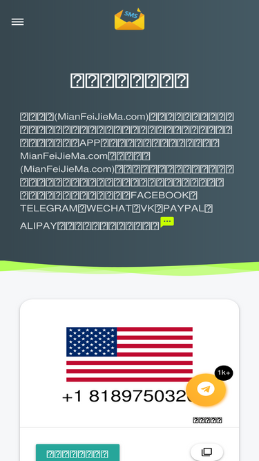 89%免费接码(mianfeijiema.com)提供中国、美国、英国等各国免费手机号码短信接收服务,你可以使用我们的免费手机号码注册app或账号。免费在线接收短信就来mianfeijiema.com。