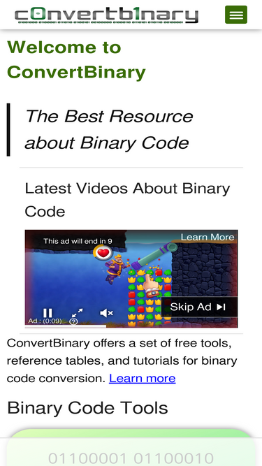 100%ConvertBinary.com features a set of free tools and translators, reference tables, and tutorials about binary code conversion.