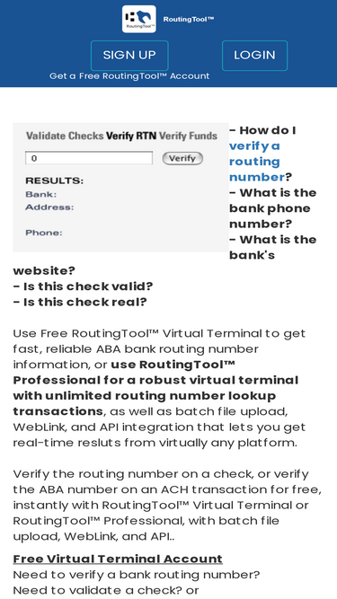 78%routing number verification and bank routing numbers bank search tool that finds any valid routing number in the database plus rtn routing number algorithm check to validate funds and check guarantee.