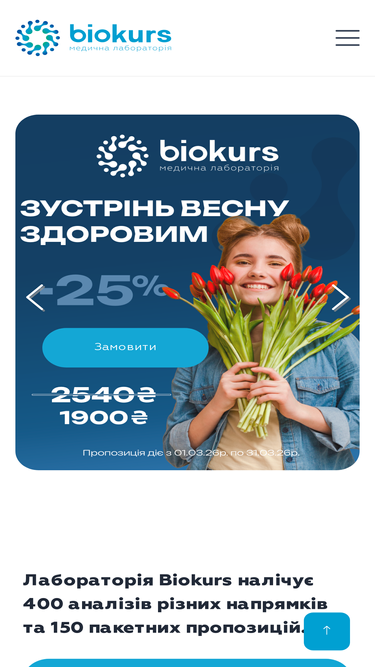 81%У нас Ви зможете здати усі необхідні аналізи для оцінки здоров’я. Biokurs налічує 400 аналізів різних напрямків та 150 пакетних пропозицій.