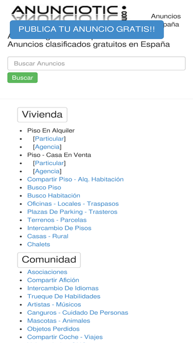 78%España ofrece anuncios clasificados locales para trabajos, compras, ventas, inmuebles, servicios, y eventos - Publica tu clasificado gratis - Spain