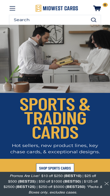 57%midwest cards is a premier dealer of collectible trading cards. serving customers in its retail store and online throughout the world, midwest cards provides competitive prices and first class customer service to collectors and wholesale customers.