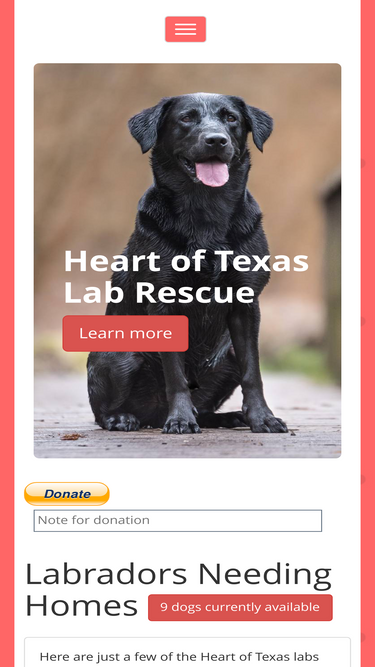 83%the heart of texas lab rescue is a non-profit 501(c)(3), all-volunteer organization based in austin, texas. our mission is to rescue labrador retrievers from shelters, pounds, abandonment, and other situations, and place them in loving, caring homes. the hot lab rescue serves austin, san antonio, and surrounding areas.