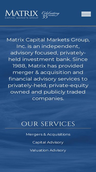 100%Matrix Capital Markets Group is an independent, advisory focused, investment bank providing merger & acquisition and financial advisory services.