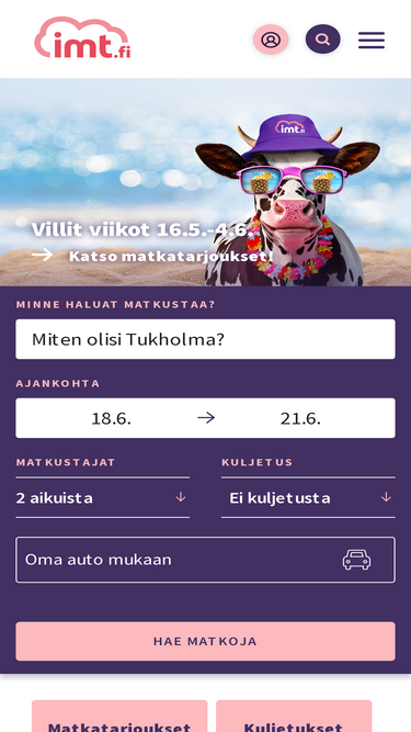 86%IMT:n laajasta valikoimasta löydät niin lento- ja bussimatkatkin, kuin oman auton matkapaketit Legolandiin.
