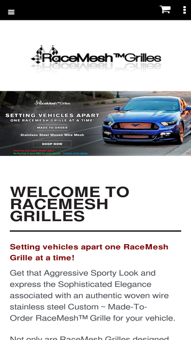 authentic stainless steel woven wire mesh custom racemesh™ grilles for your vehicle. designed with several styles and colors of premium stainless steel woven wire mesh. made to order in usa!