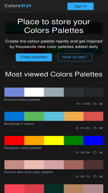 100%Oldest Palettes Collections hand picked. Colours schemes or Colors collections, color schemes list, color combinations collections for web design.