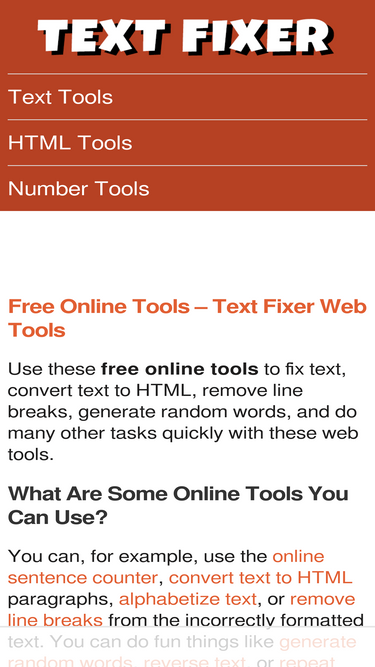 88%Use these free online tools to fix text, convert text to html, remove line breaks, generate random words, and do many other tasks quickly with these web tools.