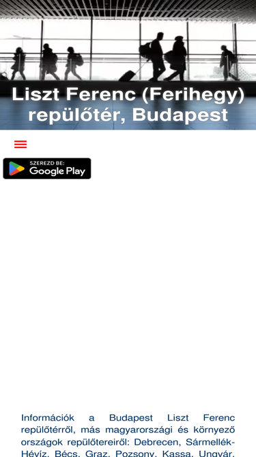 82%Privacy Policy. Flight schedules for Liszt Ferenc (Ferihegy) Airport, Budapest, other Hungarian and neighboring countries' airports. Arrivals and departures in real time. Hotel reservation, car rental, maps of the airports.