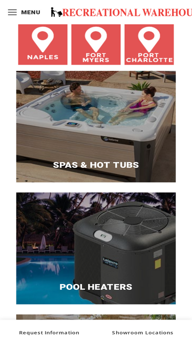 Visit our outdoor warehouse showrooms in Fort Myers, Naples, Port Charlotte, & Sarasota, Florida. Outdoor Kitchens, Pool Heaters, Pool Supplies, Spas, Hot Tubs, BBQ equipment.